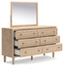 Clean-lined and contemporary—but far from stark—this dresser with mirror is a fresh style awakening. Pairing a light finish with replicated oak grain and textured beige details that replicate the look of cane, its mixed materials bring a naturally versatile vibe to your bedroom. Prepare to have your mind blown by the vast universe of possibilities that await within the spacious drawers. Whether you're prepping for work or getting ready to hit the town, the mirror will have you looking fabulous from every angle.