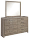 | Details | Made of engineered wood (MDF / particleboard) and decorative laminate in vintage warm gray with subtle pearl effect over replicated cherry grain, Pewter-tone hardware, 6 smooth-gliding drawers with replicated linen lining, Mirror attaches to back of dresser, Assembly required, Includes tipover restraint device | |