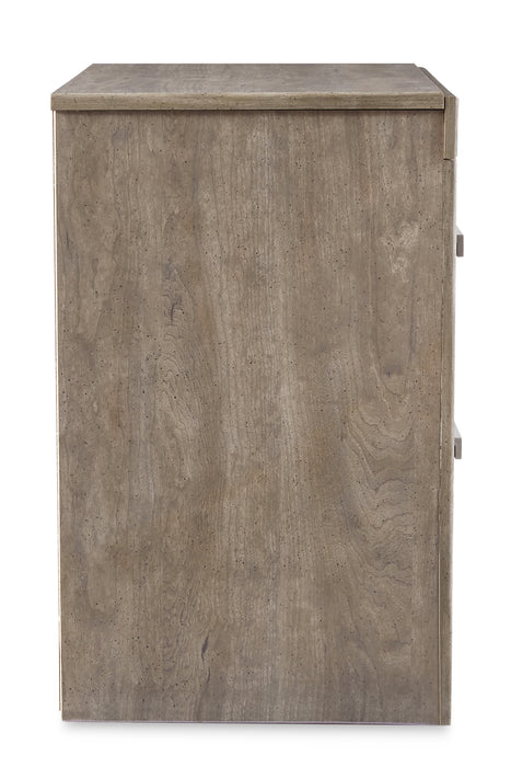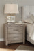 Details Made of engineered wood and decorative laminate, Warm vintage gray with subtle pearl effect over replicated cherry grain, Pewter-tone hardware, 2 smooth-gliding drawers with replicated linen lining, 2 USB charging ports, Power cord included; UL Listed, Assembly required