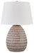 | Details | Made of metal with modified drum hardback fabric shade, Distressed beige and white finish, Due to the finishing process of this product, some variations may occur, 3-way switch, 1 E26 socket, type A bulb recommended (not included); 150 watts max or LED equivalent; UL Listed, Assembly required | |