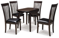 Short on space can still mean you’re long on style. If contemporary decor tantalizes your taste buds, savor the beauty of this 5-piece dining set. Dark and dramatic, this sleek drop leaf dining table and rake-back dining chairs pack plenty of appeal into a compact design.