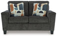 There’s something about this loveseat that’s so easy to appreciate. Maybe it’s the plush upholstery and soothing tone, eager to support your quest for total relaxation. Perhaps it's the modern flair of its simple lines, tapered legs and abstract-patterned pillows. Whatever it is that appeals to you, this is a piece you're gonna love.
