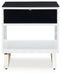 Combining a high-gloss white finish with a black glass tabletop, the Gardoni end table proves opposites really do attract. It's the perfect blend of modern style and functionality, with a spacious drawer and open cubby for keeping media needs close at hand. What a smart choice on so many levels.