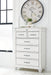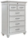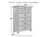 Give your retreat vintage charm with this chest. Sporting a beautifully distressed whitewash finish, it includes seven varied-sized drawers for an organized wardrobe. Generously scaled moulding from top to bottom, along with bun feet and drawer handles with a transitional aesthetic, give this chest character—evoking the feel of a quaint cottage escape.