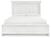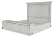 Give your retreat vintage charm with this queen panel bed and storage footboard. In a beautifully distressed whitewash finish, you'll love the headboard's grand style featuring a picture framed panel. The bench footboard is equally elegant offering extra storage and a convenient seat. Generously scaled moulding from top to bottom, along with bun feet give this bed character—evoking the feel of a quaint cottage escape.