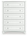 | Details | Made with engineered wood (MDF/particleboard/plywood) and decorative laminate for the right balance of affordability and durability, Matte white finish, Decorative laminate replicates natural or man-made material surfaces with consistent color, pattern and texture, Crystal drawer knobs, 5 smooth-gliding drawers, Drawer interiors are lined with a faux linen laminate for a clean, finished look, Safety is a top priority, clothing storage units are designed to meet the most current standards for stability, ATM F 2057 (ASTM International), Drawers extend out to accommodate maximum access to drawer interior while maintaining safety, Minor assembly required | |