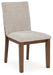 Experience worry-free living with this dining chair. Handle life's little messes with ease thanks to washable Next-Gen Nuvella™ performance fabric. Designed to effortlessly blend casual and refined aesthetics, the rich brown butcher block veneer exudes a modern, relaxed vibe you'll love.