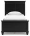 | Details | Includes queen panel headboard, footboard and rails, Made with hardwood solids, birch veneer and MDF substrate, Black painted finish, Thick profiled tops, Tapered feet, Foundation/box spring required, sold separately, Mattress available, sold separately, Assembly required, Bed is compatible with an adjustable base | |