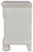 Elegant, timeless furnishings take your bedroom to the next level. Nothing does that better than this nightstand. The antiqued white finish with a wonderful grain texture radiates sophistication, while a dark bronze-tone knob adds an ornate touch. A single drawer and open bookcase cubby allow for versatile storage or display options, making this nightstand a functional favorite.