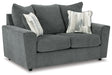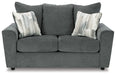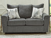 What’s new in neutrals? Shades of gray, of course. Embrace the sophisticated design trend with this gorgeous loveseat, which offers a clean-lined, contemporary style at a comfortably cool price. Sure to lift your spirits, the plush chenille fabric is fabulously neutral. Modern flared arms give it a distinctive flair. This loveseat also arrives with two cool brushstroke accent pillows to elevate the taste and comfort level.