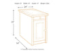 | Details | Made of solid and engineered wood and veneers, Dark bronze-tone hardware, 1 door; 1 fixed shelf, Pull-out tray with 2 cup holders, AC power supply with 2 USB charging ports, Assembly required | |