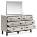 | Details | Includes dresser and mirror, Made with engineered wood (MDF/particleboard/plywood) and decorative laminate for the right balance of affordability and durability, Light gray finish over a replicated oak grain with authentic touch; base has matte black finish with subtle replicated wood grain, Decorative laminate replicates natural or man-made material surfaces with consistent color, pattern and texture, Handles with matte black finish, 6 smooth-gliding drawers, Drawer interiors are lined with a faux linen laminate for a clean, finished look, Mirror attaches to back of dresser; can also be hung horizontally or vertically, Safety is a top priority, clothing storage units are designed to meet the most current standard for stability, ASTM F 2057 (ASTM International), Drawers extend out to accommodate maximum access to drawer interior while maintaining safety, Assembly required | |