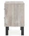 | Details | Made with engineered wood (MDF/particleboard/plywood) and decorative laminate for the right balance of affordability and durability, Light gray finish over a replicated oak grain with authentic touch; base has matte black finish with subtle replicated wood grain, Decorative laminate replicates natural or man-made material surfaces with consistent color, pattern and texture, Handles with matte black finish, 2 smooth-gliding drawers, Drawer interiors are lined with a faux linen laminate for a clean, finished look, USB and wireless charging options, Power cord included; UL Listed, Assembly required | |