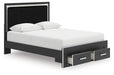 | Details | Includes upholstered panel headboard, storage footboard, roll slats and platform rails , Made with engineered wood (MDF/particleboard/plywood) and decorative laminate for the right balance of affordability and durability , Matte black finish with subtle replicated wood grain, Decorative laminate replicates natural or man-made material surfaces with consistent color, pattern and texture , Polyester upholstery , Chrome-tone and glitter accents, Large-scale chrome-tone handles with faceted details, 2 smooth-gliding drawers , Drawer interiors are lined with a faux linen laminate for a clean, finished look , Bed does not require additional foundation/box spring; accommodates most zero clearance adjustable bases with the addition of a bunkie board, Mattress available, sold separately, Minor assembly required | |